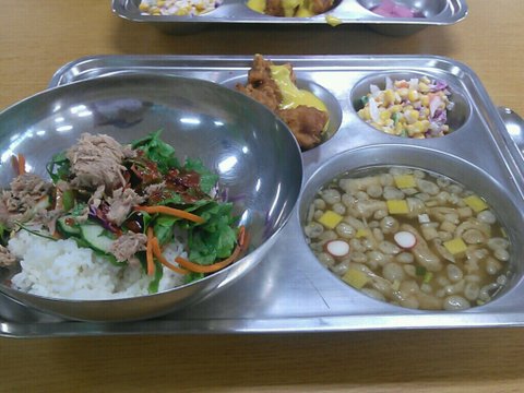 참치야채비빔밥,후라이드닭튀김,콘샐러드,우동면없는 우동국