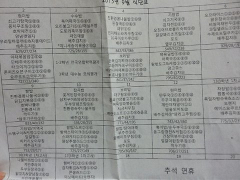 급식표가 집에 9월달밖에없어서 이거라도 올려요!