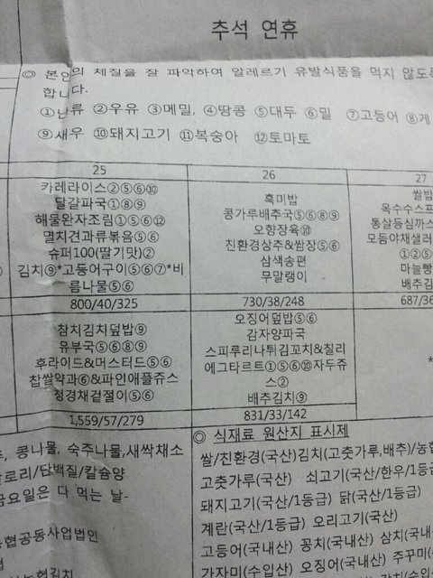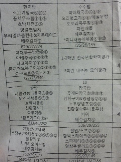 혹시나 ㅋㅋㅋ오해계실까봐 급식표사진올려요♥♥♥♥♥♥