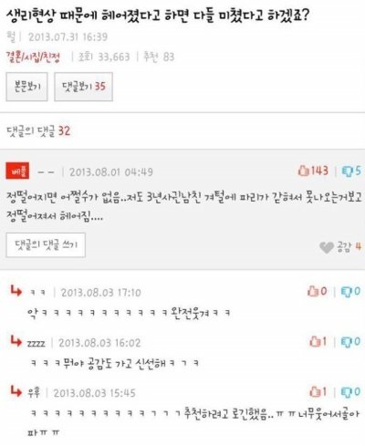 그런데 이런 흔한 뻘글을 굳이 클릭해서 조회수 늘리고 반대 누르고 댓글 달면서 톡선 보내고 북치고 장구치는 거 보니까 판녀들 또 여돌로..
