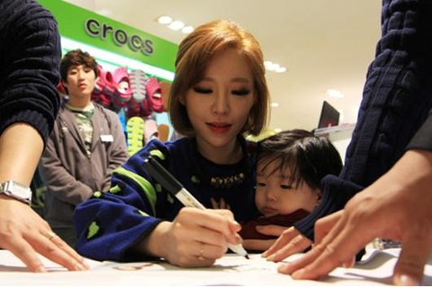 한 손으로 아기 안고 싸인해주는데..