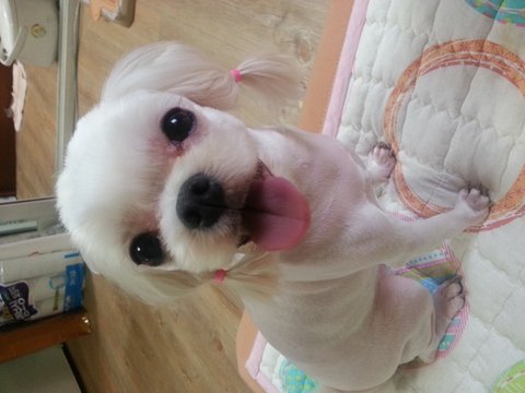 유기되어 동물병원에 임시보호 되있던 저희 딸 연이 입니다 몇일동안 저희집에 보호되어 주인을 찾아보았지만 주인을 찾을수 없어 결국 저희가족이 되었지요