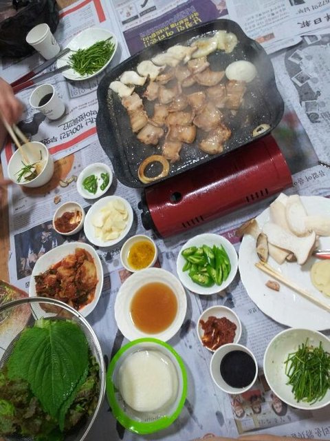 저녁하기 귀찮은날 삼겹살궈먹기~*