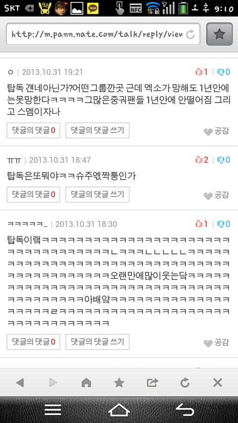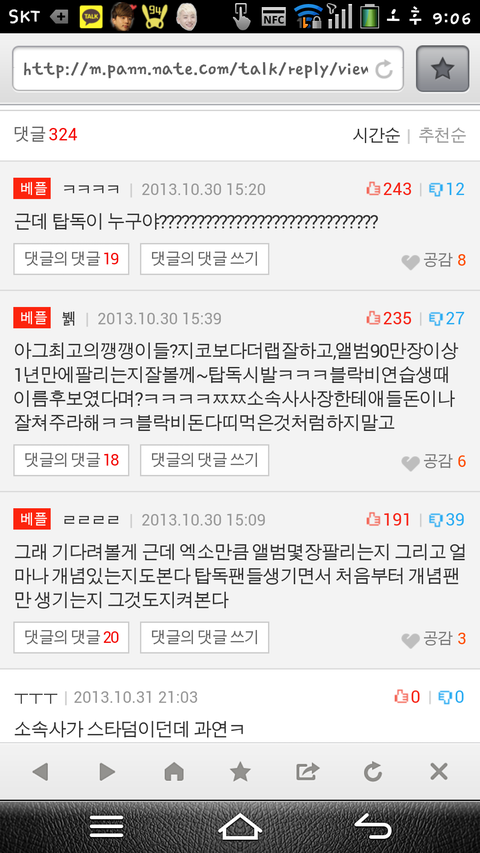 무슨 ㅋㅋㅋ 이게 할말이냐???미친 ㅋㅋ 탑독이 무슨 잘못을 햇는데 ???아 블락비 ???그게 탑독이 알고 그랫어요???그리고 그글쓴사람이 관심받고싶은 관종인것도 생각못하냐???? 어떻게 이따구로욕해???