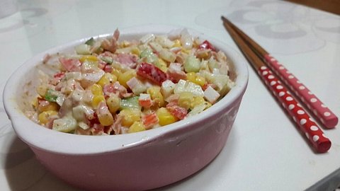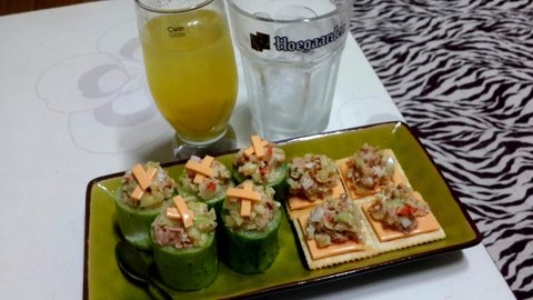집에있는 오이 속파내고 속은입으로 넣고 ㅎㅎ 크래미+참치+피클머스터드+오이+양파 버물