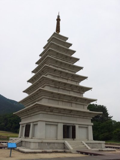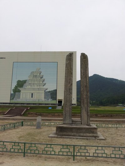 이렇게 미륵사지를 복원하려고 하는 작업을 볼 수있음