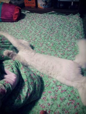 몸 쭉 늘려 숙면중이냥