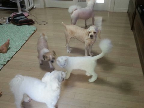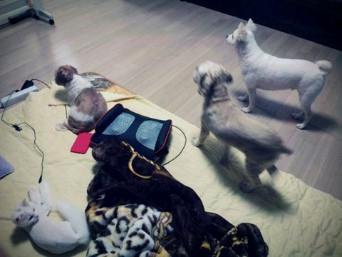 저희는 강아지 세마리와 고양이 한마리 그리고 최근에 앵무새 한마리 들여와서