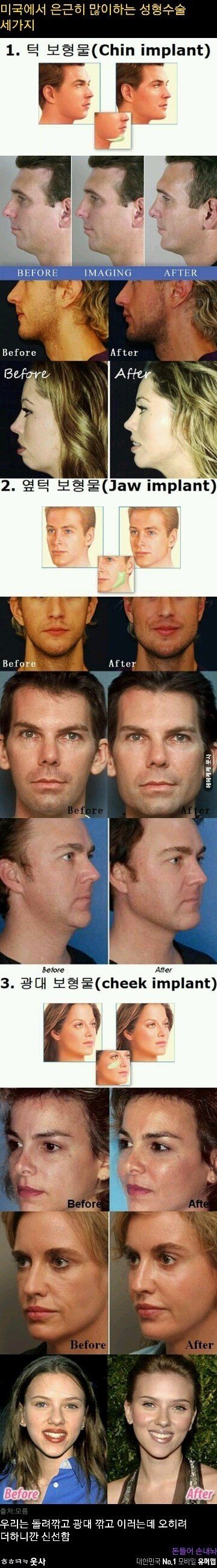 저기가면 자연미인이라는 것들아... 서양인이랑 동양인은 뼈 골격 자체가 다르다 눈썹뼈가 훨씬 튀어나와있고 코도 높고 얼굴 가로 폭이 좁다. 한마디로 동양인에 비해서 입체적이다. 그러니까 광대들어가고 턱들어가면 빈약해보이고 매력없어보인다. 동양인은 얼굴이 전체적으로 수려하게 흘러가며 굴곡이 심하지 않다. 가로폭이 넓고 코는 낮고 눈과 입이 작다. 그렇기때문에 서양의 미의기준을 우리한테 맞춘다는거 자체가 어리석은거임. 동양인만의 미를 추구해야지... 보형물 넣고 찢어가면서 서양인 따라할 필요 없다고봄