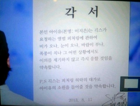 긱스콘서트에 아이유가 게스트로 긱스콘답게 힙합스타일로 입고 가서 노래부르고 각서 썻음 ..ㅋ