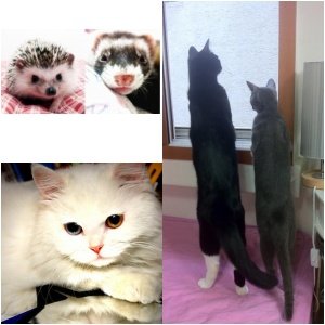 고도리(고슴도치) 밍키(페럿)  비키(흰냥이) 카이(검냥이) 로엘(회냥이)