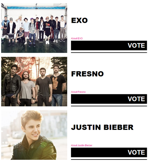 후보에 저스틴비버랑 원디렉션 있음;;;;;;;