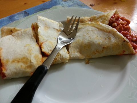 또띠아에 계란 깨넣고 닭가슴살 양념하고 볶아서 치즈얹고 말았어요~