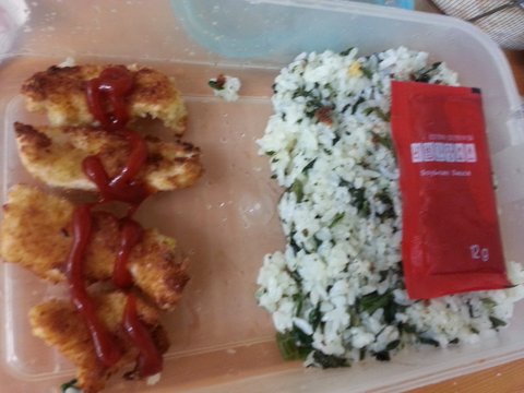 왼쪽은 치킨까스~ 그러고 보니 제가 튀김을 많이 해먹네요., 뱃살 미안...