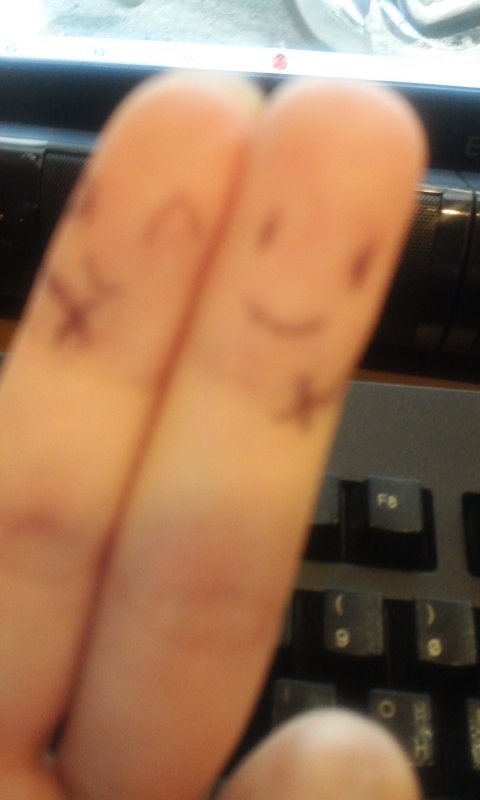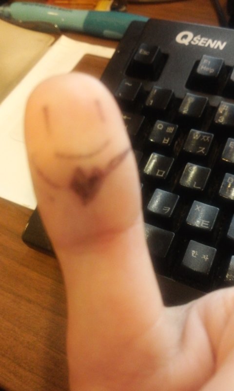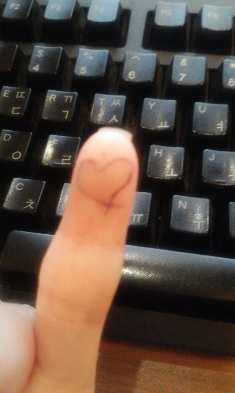 남친이 너무 보고싶어서 사진처럼 손가락에 그림그리고 말풍선그려서 편지형식으로 사진보내줌 ^3^