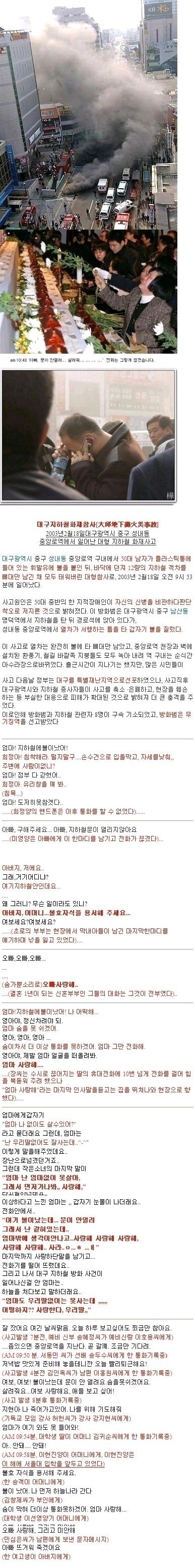 대구 지하철 화재 당시 가슴저미는 마지막 통화,문자 내용들