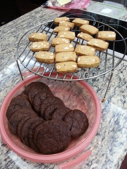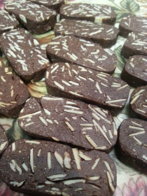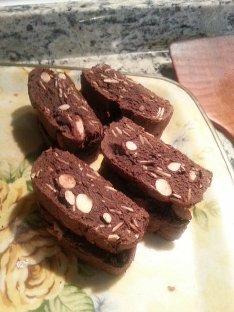 이건 버터가 들어가지 않은 초코 비스코티 ㅋㅋㅋ 집에 남은 아몬드 슬라이스랑 통아몬드 몽땅 집어넣어서 만들었어요.