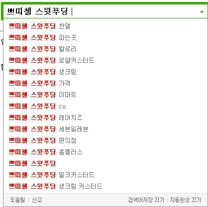 쁘띠첼 스윗푸딩 찬열이 자동완성 연관검색어 다뜨네