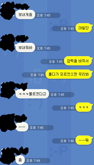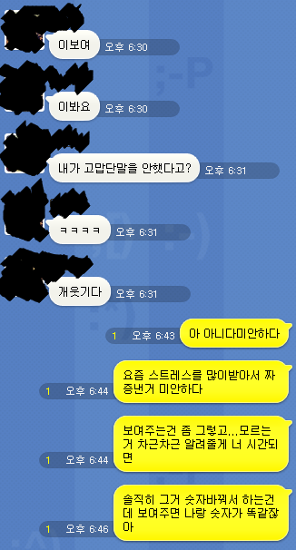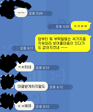 서로 기분이 상해서 좀 정색하는 카톡이 좀 오갔음