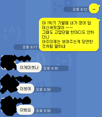내가 시험지 대신 써준것도 고맙다고 안하지 않았냐...이젠 당연하다는듯이 그러지 마라...