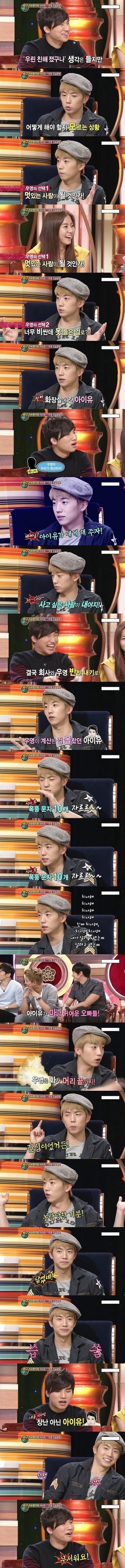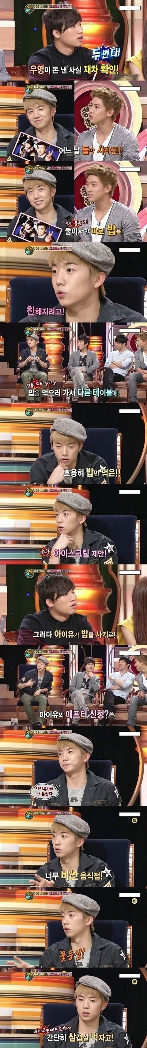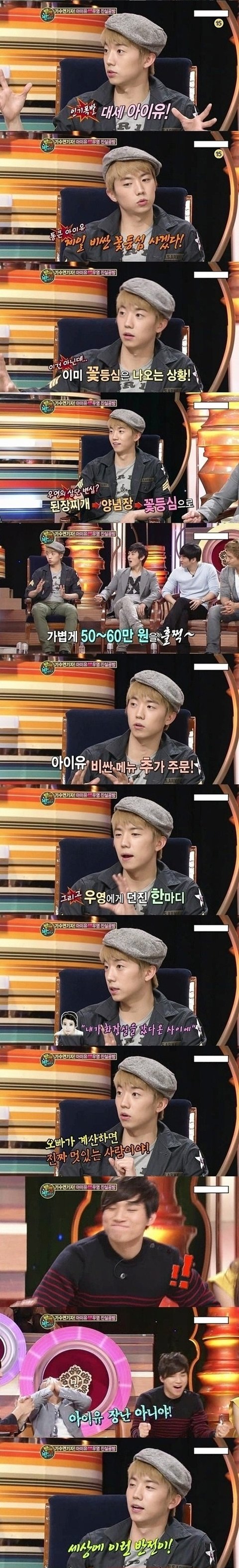 꽃등심논란은 낯가림이 심한 아이유때문에 친해지려고 먹으러 갔고 우영이 한번 샀으니 자신이 사겠다고 갔는데 계산 해놓으면 멋있을꺼라는 친해지려 아이유 나름 농담처럼 말한걸 우영은 아이유의 의도와는 다른 판단을 해서 밥값을 낸건데 참 억측에 억측을 만들어 까기만 바쁘네요 밥값한번 안내겠다고 떠넘길 의도로 저리 했을꺼 같나요? 아이유가 한창 잘나가던 시기에 돈이 없겠습니까? 아니면 머 어장관리? 어떤 사람이 어색한사이 풀어보겠다고 서로 한번씩 밥사주며 밥먹으러 갔는데 어장관리를 합니까? 아이유도 나름 친해지려고 농담처럼 한말인데 어색한 사이에서 저런 농담이 다른 방향으로 받아들일수도있고 농담처럼 받아 드릴수있습니다. 근데 그걸 가지고 확대해석해서 기사내고 억측을 해버리는 네티즌들이 더문제이고 객관적이고 순수하게 받아들이지 못하고 억측된 내용을 보면서 무엇이 옳은지 판단도 안하고 그냥 받아들이는 사람들, 글쓴이처럼 까기위해 이용하는 사람들이 문제인거죠