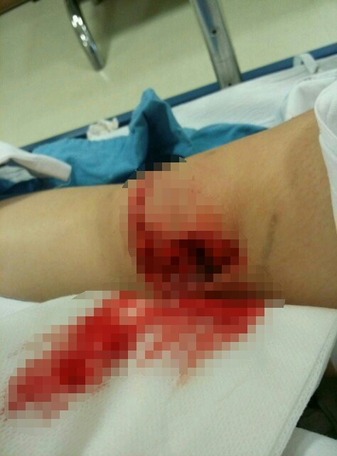 (친구 무릎 다친사진입니다.. 모자이크 했습니다.. )