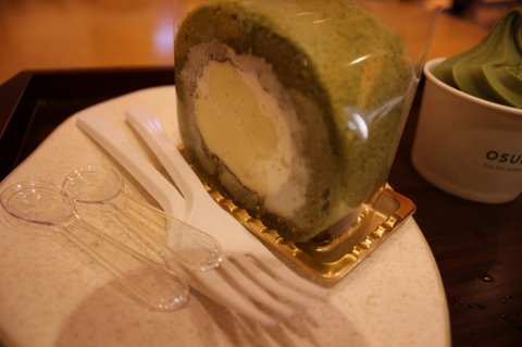 롤케익이랑 녹차아이스크림을 주문했는데.. 분명 1명이라고했는데 스푼과 포크는 2개씩..