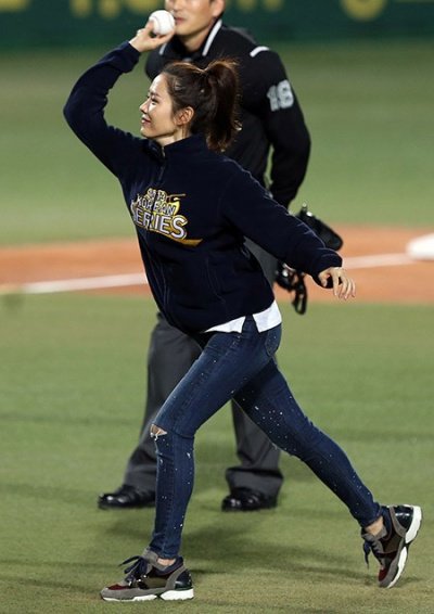 최근 완전 단촐한 캐주얼 차림으로 시구하러 갔었는데...