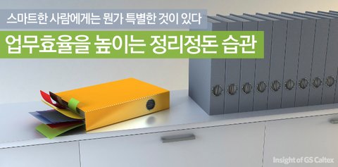 어떠세요? 업무효율뿐 아니라 삶의 질을 높이기 위해 ‘정리정돈’의 습관 한번 들여보지 않으시겠어요.