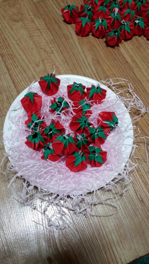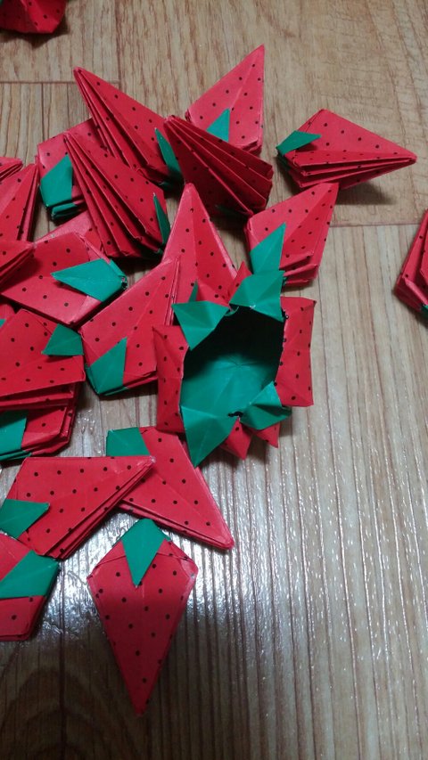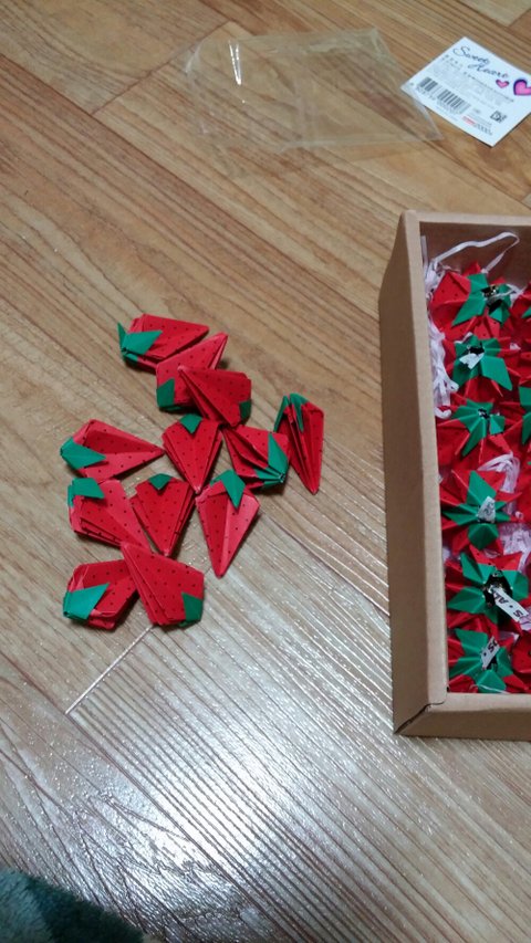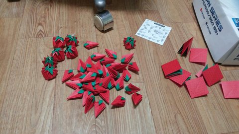 색종이로 접으니 진짜 딸기랑 좀 비슷해보이는군요(는 나만의 착각)