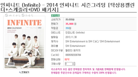 2014년 인피니트 캘린더 예약받나봐요
