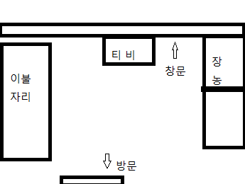 방에 장농하나 작은 티비하나가 전부였고, 왼쪽으로 할아버지가 누워계시고 솔직히 냄세도 썩