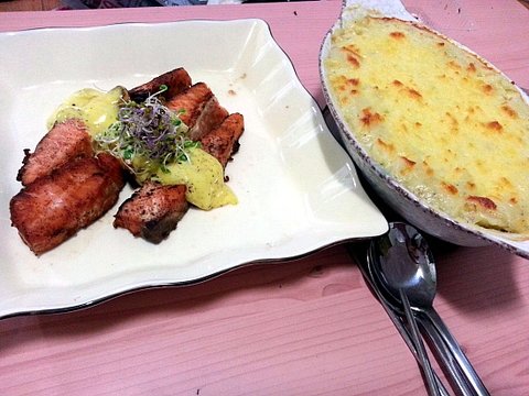 연어스테이크와 감자그라탕