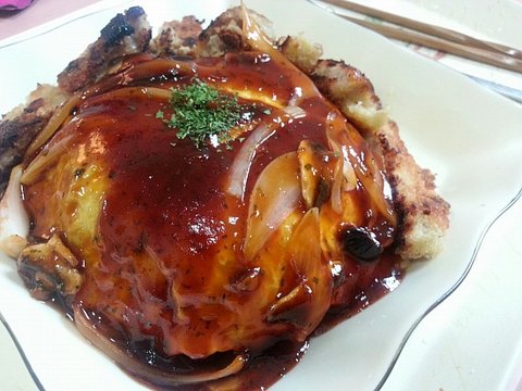 스테이크 소스와 이것저것 넣어서 오므라이스와 돈가스에 어울리는 소스로 만들어봤어요ㅋㅋ