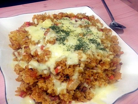 아래껀 토마토 페이스트와 고형카레를 살짝 배합해서 만든 소스를 얹어서