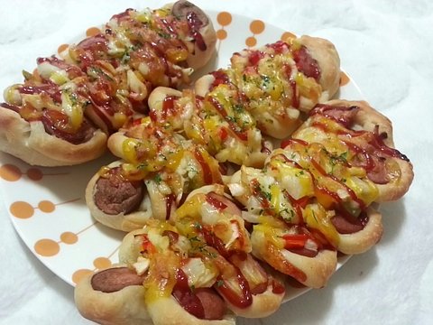저런 모양이 나와요. 케챱, 머스타드 뿌리고 치즈를 살살 올려주면 완성