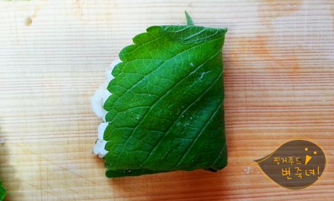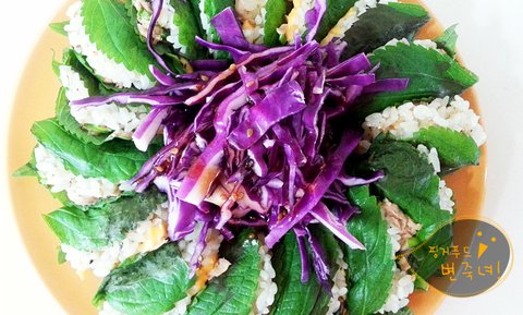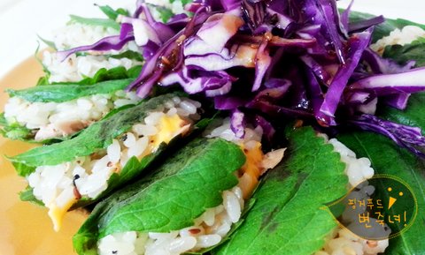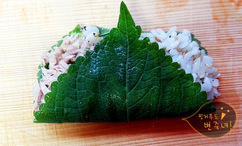 욕아님. 참치마요와 밥을 깻잎에 접어 만든 신개념 접밥.