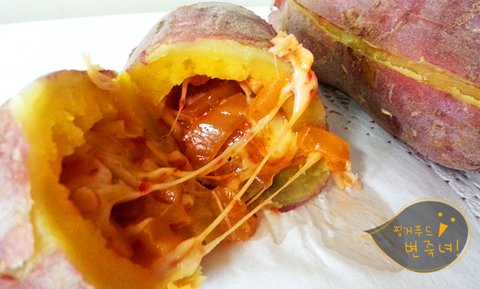 우리집 통고구마안에는 김치와 치즈가 준비되어있음. 무심코 까먹은 고구마에 축복이. 굿럭.