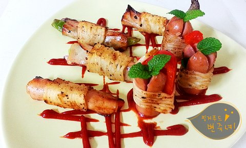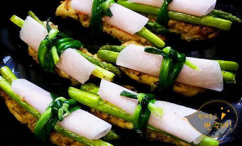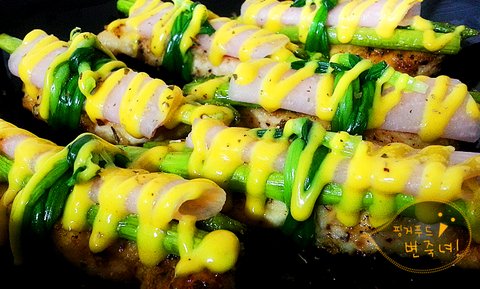 술집에서 서비스로 나온 콩나물국에 아스파라긴산을 아스파라거스라 부르는 친구를 위한 아스파라거스 교육요리. 카레가루를 입힌 닭안심튀김에 아스파라거스구이와 쌈무를 돌돌 말아줌. 그 후 내친구 은정이는 꽈리고추를 보고도 아스파라거스라 함.