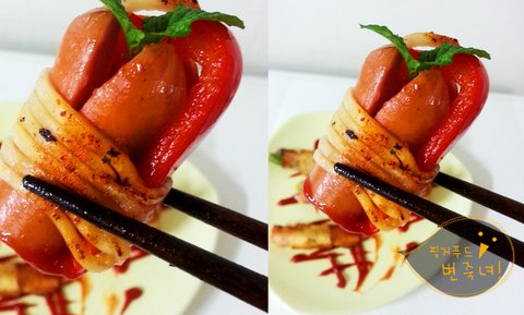 떡볶이 튀김 순대 김 다 말아서 튀겨먹는 요리. 한방에 모든걸 해결하려는 성질급한 쌍삼처자의 한이 담긴 슬픈감성요리.