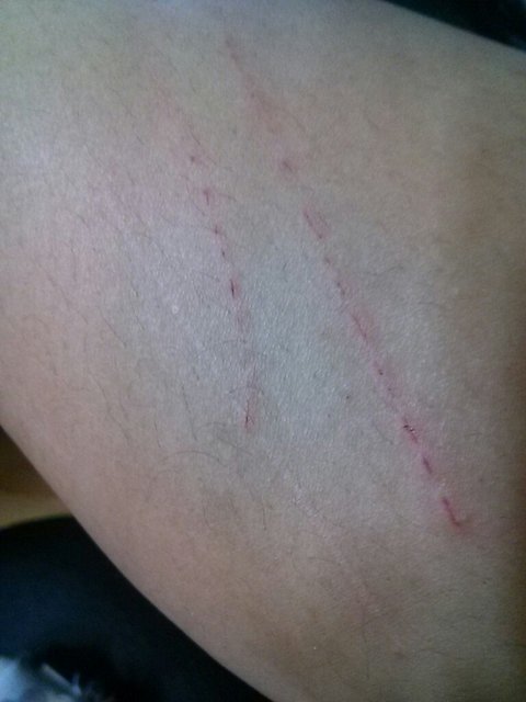 떨어지면서 긁고 종아리에 하얀색은 흉터에요고양이때매ㅜㅜ