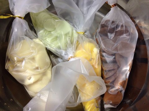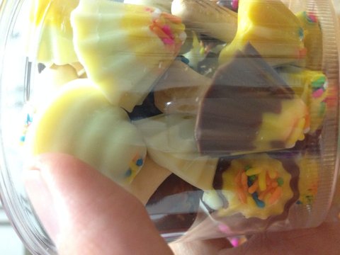 이름까먹었는데 그...케익크림짤때나 제빵할때쓰는 비닐에 밀크초코, 화이트초코, 메론향초코, 망고향초코를 봉지에 넣어서 미지근한물에 녹였어용~