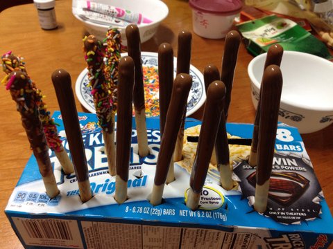 아... 이 빼빼로만드는데도 요상한스킬로했네요;; 빼빼로과자를 찍을만한 쓸만한 병이나 컵이없어(종이컵에하기엔 너무 넓었음;;) 비닐안에 초코에 과자하나씩 찔러서 했네요;;ㅎ