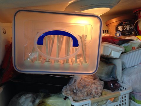 음... 조그만한 미동에도 과자들이 헤드뱅잉을해서 별짓을 다함..;; 집에 작은 냉동실에 공간이 부족해 자릴넓혀 과자님들 안전하게 넣어드림