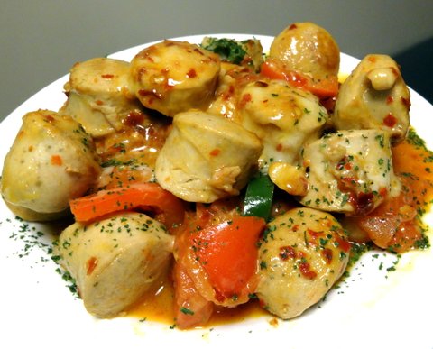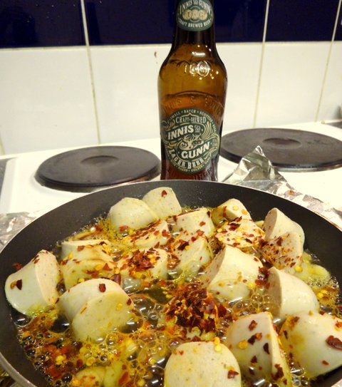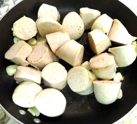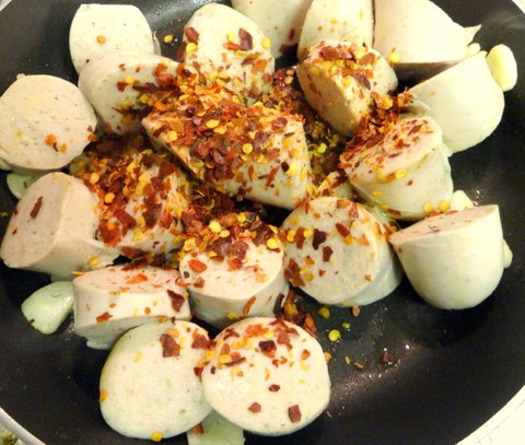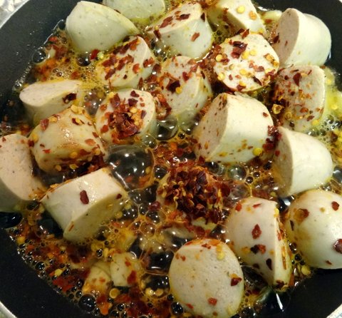 소시지와 마늘 맛이 베인 육수가 만들어짐