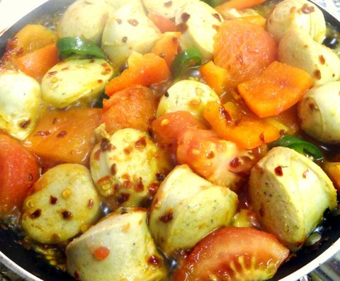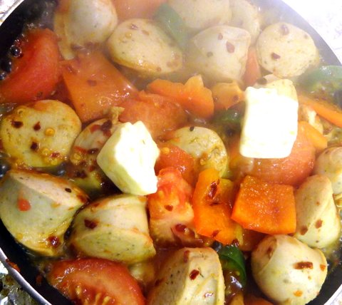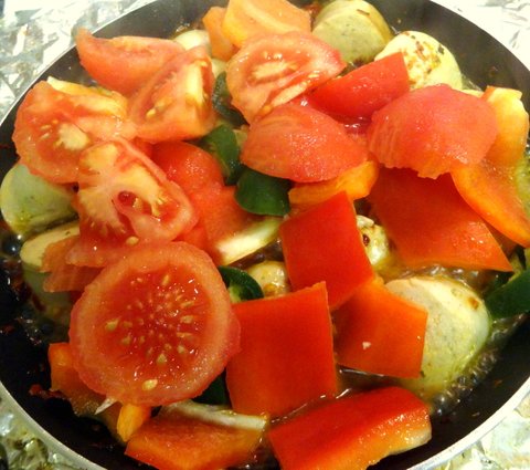 파프리카, 고추, 토마토를 적당한 크기로 썰어서 넣음