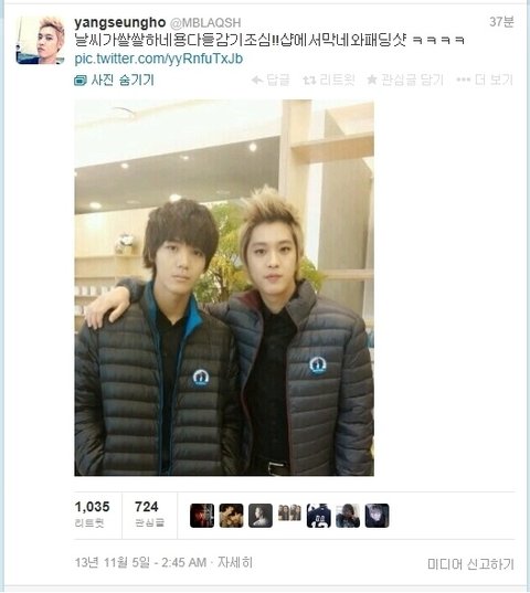 리더 승호는 미르와 본인의 사진을 올리는데용