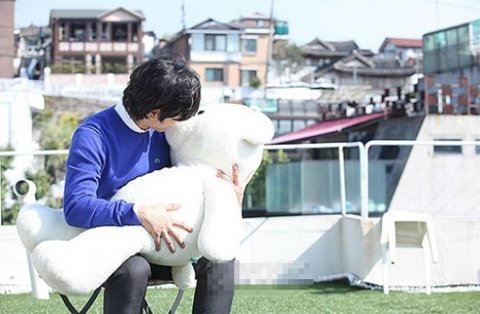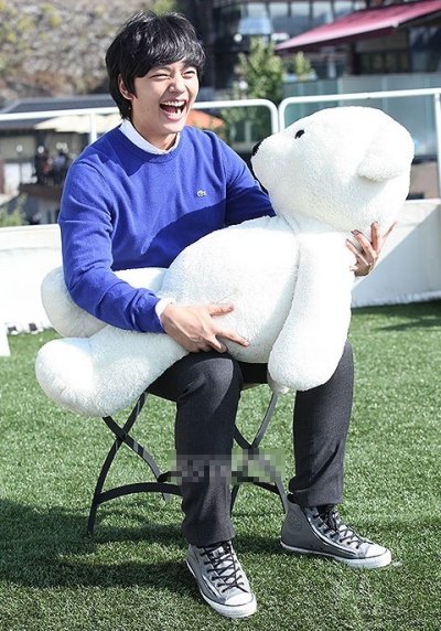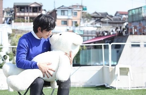 작정하고 소품으로 준비한 것 같은 곰돌이를 세차게 끌어안으며 인터뷰 사진을 찍은 징구 어빠