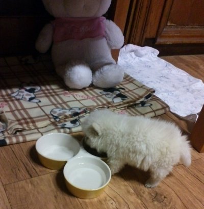 갑자기 얻게된거라 강쥐용품이 하나두 없었음..... ㅠㅠ 그래서 일단 반찬그릇에다가...