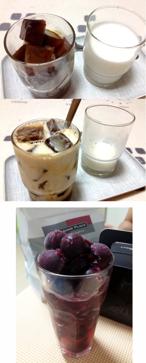 블랙커피찐하게 타서 얼려서 각얼음 만든다음에 우유부으니 큐브라떼 -0-